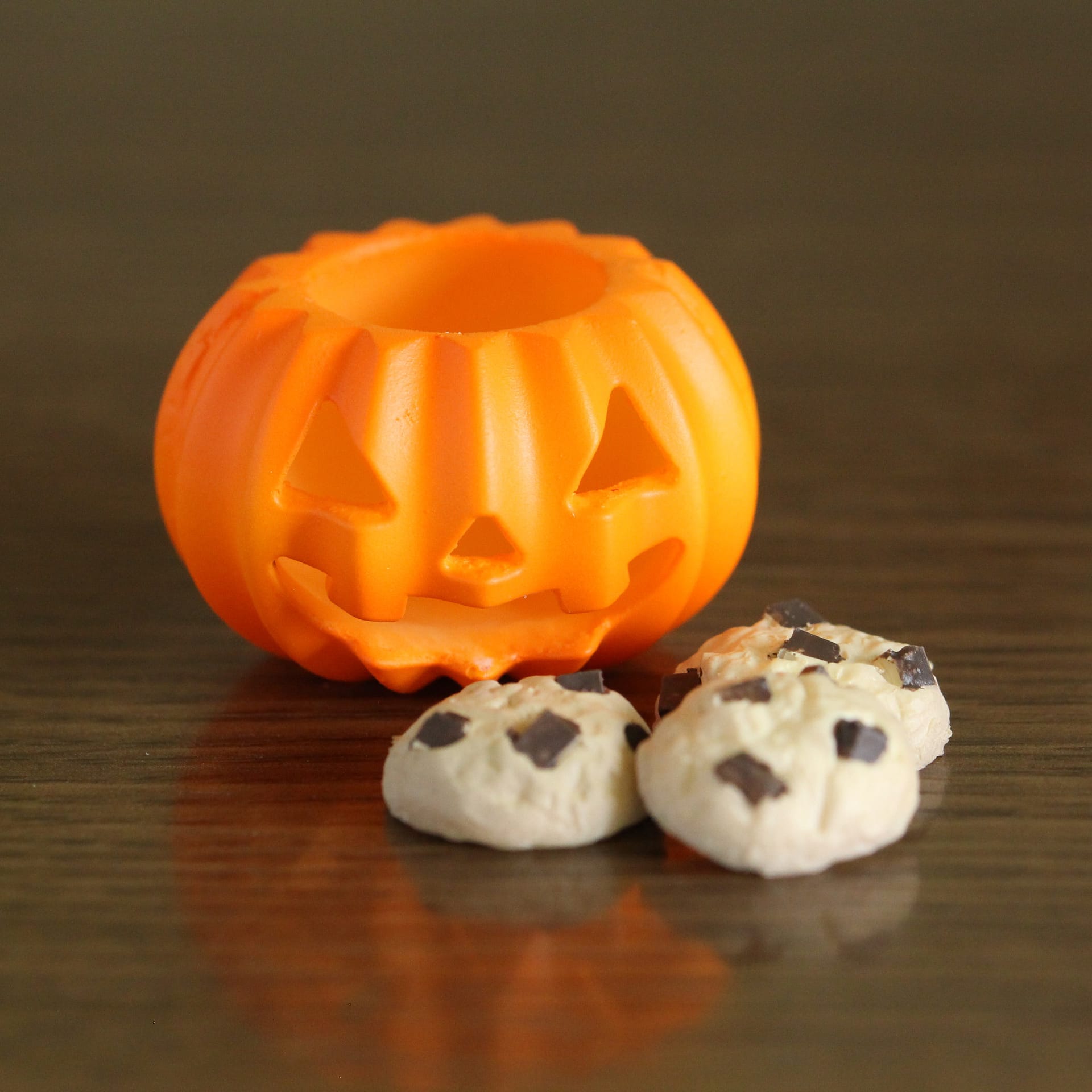 パンプキンの中身のチョコチップクッキーは取り出せるので、ご自身で好きなミニチュアお菓子を作ってカスタマイズできる楽しさもあります。